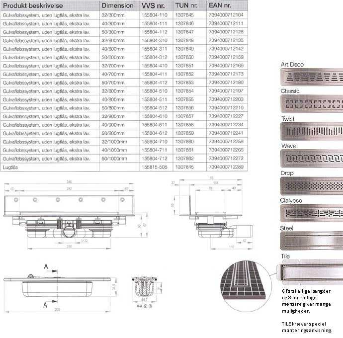 Purus Line modellerne er primært beregnet for beton gulve med klinker. På forespørgsel er der også mulighed for at levere til andre typer gulve. (Kontakt deres tekniske afdeling.)