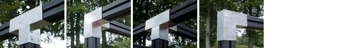 kontrast til stolpernes trælook. Beslagene fås både som hjørne- og forlængerbeslag, så pergolaen kan sammensættes helt efter familiens hoved.