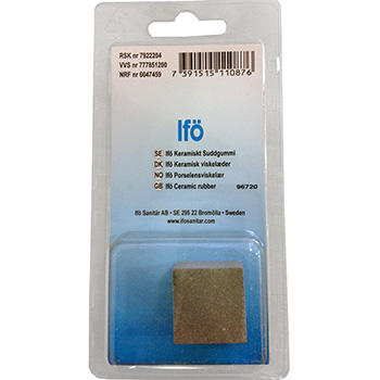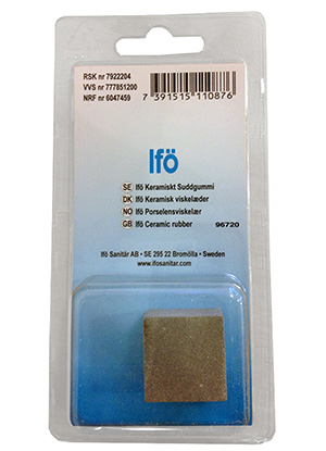 Den type metalafsmitninger kan ikke fjernes med rengørings- eller kemiske midler. Men kræver et specielt sanitetsviskelæder fra Ifö. Det specielle viskelæder forhandles af VVS grossisten og kan bestilles: VVS nummer 77 7851 200.