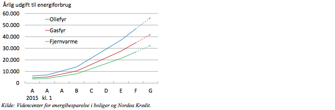 Det er således ikke ualmindeligt, at varmeregningen i de bedste A-mærkede boliger ligger omkring 5.000 kr. om året, mens den på de værste energi-slugere hopper over 35.000 kr. Her er det værd at bemærke, at for en årlig nettoudgift på 30.000 kr., kan man afdrage og forrente et fastforrentet real-kreditlån på over 600.000 kr.