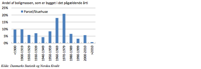 Figur 3.: Kun godt 5 pct. af de danske huse er bygget efter år 2000. 39 pct. er bygget i 1960’erne og 70’erne.