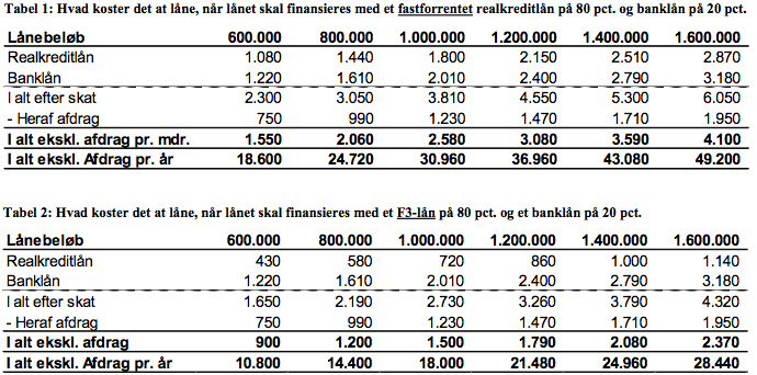 Havde boligejeren i stedet valgt at finansiere det nye hus med et F3-lån med afvikling, var den månedlige merudgift løbet op i 1.500 kr. hvilket svarer til 18.000 kr. om året – se kolonnen for 1 mio. kr. i tabel 2.