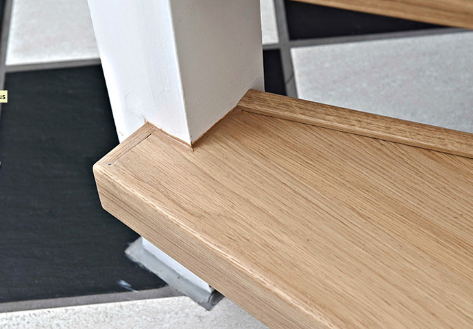 – Tilskæringen af de nye trin, inden de limes på, klares nemt med en papskabelon