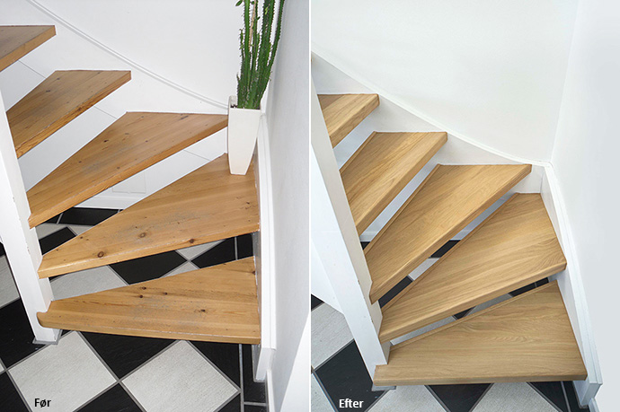 Males trinnenes underside og øvrige trappedele får du praktisk talt en helt ny trappe.