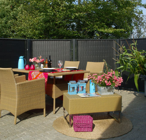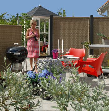 Lad for eksempel et Trend-hegn i sand danne baggrund for et farverigt blomsterunivers og krydr stemningen fra varmere himmelstrøg med futuristiske havemøbler i klar rød. Eller vælg et sort hegn og giv den romantiske middag for to på terrassen et stilrent strejf af sydeuropæisk charme.