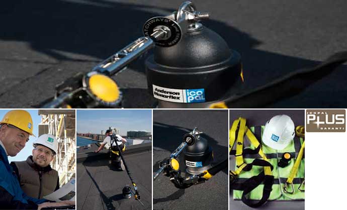 Icopal Secura System er et faldsikringssystem, til montering på nybyggeri og på eksisterende bygninger. Icopal Secura System er din sikkerhed, når der skal udføres arbejde på bygningens tag efter byggeriets afslutning.