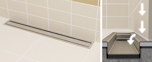 WaterLine baderumsrenden fås til beton- og klinkegulv med eller uden smøremembran og til vinylgulve. Alle modeller og tilbehør er fremstillet helt i rustfrit stål, hvilket sikrer en høj kvalitet og samtidig holder rotterne ude.