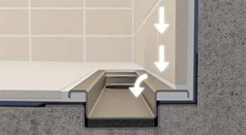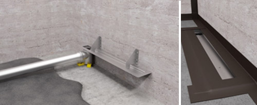 BLÜCHER® WaterLine baderumsrenden kan højdejusteres, så overdelen passer til alle fliser mellem 6 og 14 mm, ligesom renden har midlertidige monteringsbeslag, der holder renden fast under installation og bagefter skrues af, så gulv og væg kan arbejde frit.