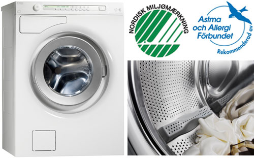 ASKO Vølunds nye vaskemaskine W68842 Svane og allergi, anbefales af både det svenske Astma- og Allergi forbund og har fået det nordiske Svanemærke, da den opfylder de højeste krav til miljø- og allergivenlighed.