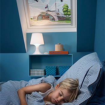 – Børn har brug for dagslys om dagen til at lege og lære. Men de har i lige så høj grad brug for mørke, når de skal hvile ud oven på dagens strabadser. Mangel på søvn svækker immunforsvaret, energiniveauet og dermed også indlæringsevnen. Men det kan være svært for at få dækket sit søvnbehov, hvis lyset og varmen står ind af vinduerne. Med mørklægningsgardiner kan man skabe et behageligt sovemiljø for børnene, fortæller Jesper Salskov Jensen, direktør i VELUX Danmark A/S.