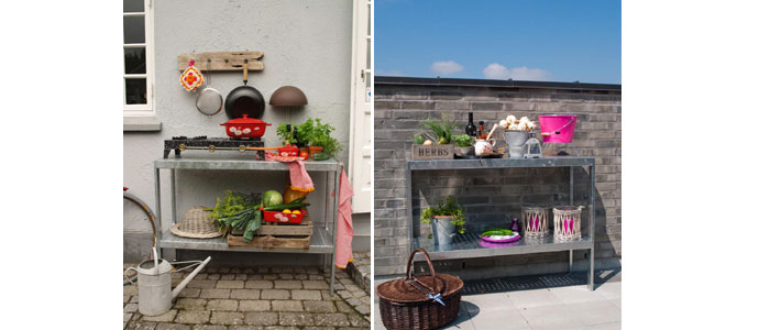 Når de kreative udfoldelser afløses af en tiltrængt pause i solen, er det oplagt at placere plantebordet i den solrige krog på terrassen eller altanen. På den måde danner krydderurter, blomsteropsatser og farverige spande en dekorativ scene for sommerens hyggestunder.