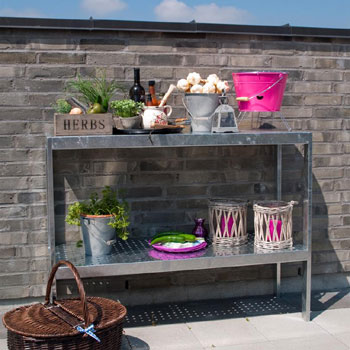 Plantebordet fra Plus er fremstillet i varmgalvaniseret stål, så familiens blomsterekspert får en holdbar arbejdsstation til hele sæsonen. Det hårdføre materiale kræver intet vedligehold, og det robuste plantebord kan derfor stå ude hele året. Samtidig former vind og vejr bordets overflade, så plantebordet får et fint, patineret udtryk, der står som rustik kontrast til terrassens grønne liv.