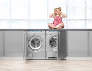 Med ASKO Vølunds nye fuldintegrerede modeller af vaskemaskiner og tørretumblere er der banet vej for en diskret skjult vaskeriløsning. De fuldintegrerede modeller er konstrueret med en flad inderlåge, hvorpå man kan montere skabslåger i det samme design, som man vælger på sin øvrige skabsindretning. Nøjagtig på samme måde, som når man f.eks. indretter sit nye køkken med en ”usynlig” fuldintegreret opvaskemaskine eller køleskab. Frontlågerne skjuler maskinerne helt og gør vaskerummet til en integreret del af din indretning i hjemmet.