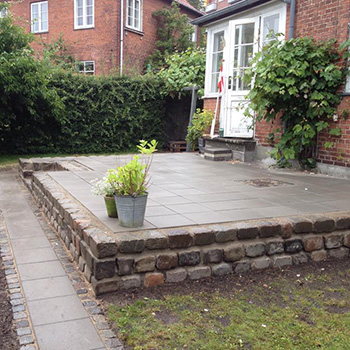 Lille projekt overstået på Frederiksberg – omlægning af terrasse, blev udført i 40×40 betonfliser med brosten og chaussesten. Terrassen passer til den gamle klassiske villa.