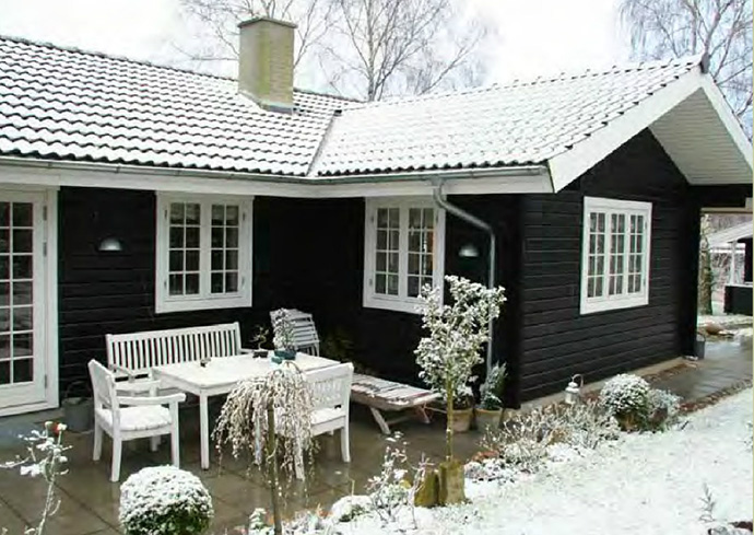 Træhuse som FRITIDSHUSE isoleres med 195 + 70 mm i ydervægge og 430 mm på loftet, såfremt ikke andet aftales.