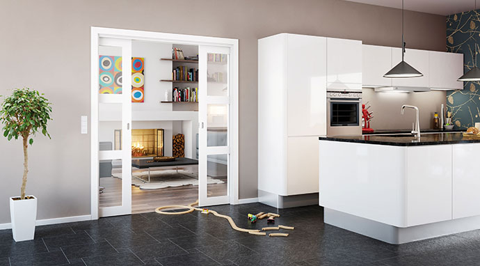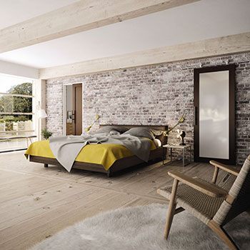 SWEDOORs skydedøre kører enten langs væggen på en skinne eller er bygget ind i selve væggen. Fordelen ved en indbygget skydedør er, at den slet ingen plads kræver i rummet – ikke engang langs væggen. Men under alle omstændigheder skaber begge løsninger mere plads i rummet, fordi døren ikke behøver ”svingplads” som en almindelig dør.