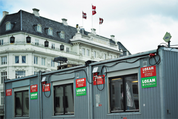 På NCC’s byggeplads ved den nye Metro Cityring på Kgs. Nytorv blev der brugt 18 af Loxams Energi+ mandskabsvogne. ”Det er en rar fornemmelse, at vi ikke brænder en masse unødig energi af til varme, når vi har fri,” siger afdelingschef René Meyer fra NCC, og tilføjer: ”Der er ikke nogen gener ved de energiforbedrede skure, men man skal lige vænne sig til lysfølere. Hvis man sidder meget stille og koncentreret ved Pc’en, så går lyset ud.”