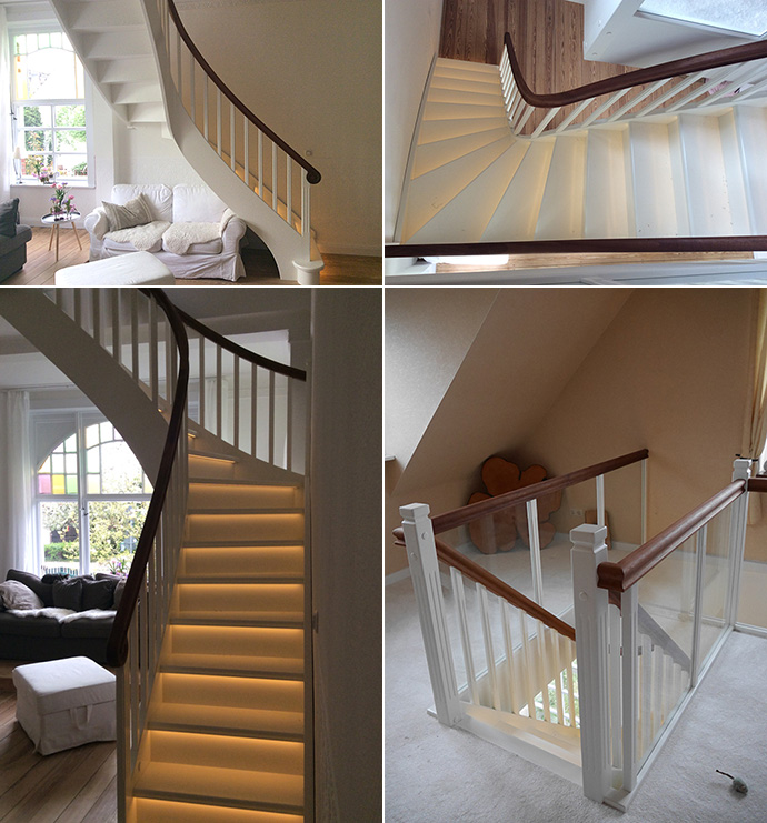 Og dette var familien Spieler’s bedste beslutning overhovedet. De kunne på nærmeste hold se jeres omfangsrige udstilling og vælge nærmere detaljer – belyste trappetrin, afrundede trin, og de bestemte sig for en krumningstrappe.