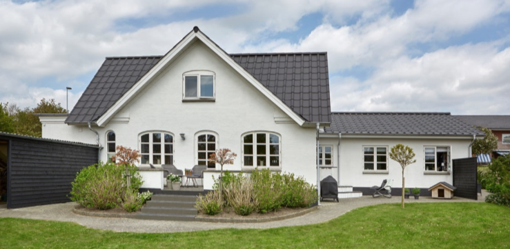 Den smukke og charmerende villa, som huser Jette, Michael og deres to børn, så meget anderledes ud, da købskontrakten blev underskrevet. Taget havde for længst udtjent sin pligt, og facaden var trist og kedelig. Oprindeligt var planen at lægge tegl på huset, men det ville blive en bekostelig affære. Efter en snak med en arkitekt kom parret frem til, at der skulle laves en tilbygning og lægges et nyt tag i vedligeholdelsesfrit fibercement. ’Med billedanimation kunne vi og arkitekten hurtigt se, at Swisspearls Toscana tag var det helt rigtige til huset,’ fortæller Jette.