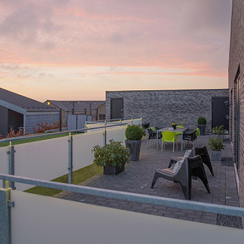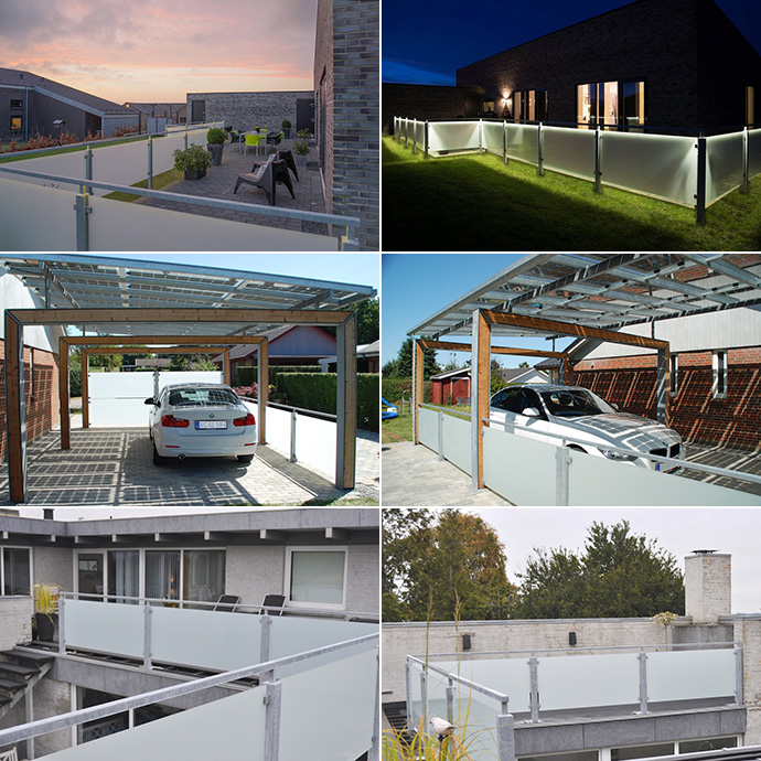 Bluetop Glashegn kan indsættes i Bluetop terrasseoverdækninger og Bluetop carporte. Det kan endvidere leveres som en fritstående løsning, der afskærmer for vinden, så du kan sidde i læ på terrassen. Læhegnet er et tidløst og vedligeholdelsesfri hegn, der løfter dit uderum og dit hus.