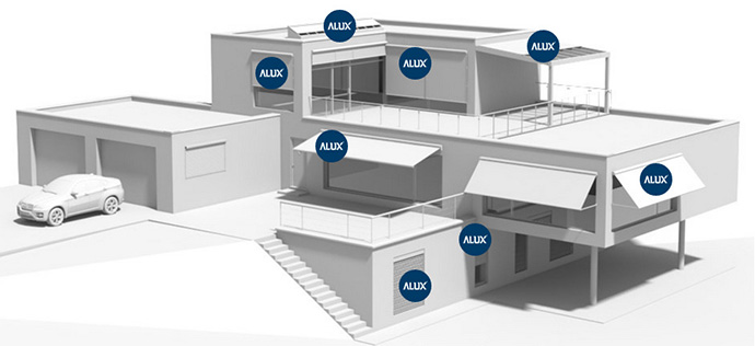 Her finder du mulige løsninger til solafskærmning af private boliger. Alux leverer mange forskelige løsninger til solafskærmning, samt sikkerhedsgardiner til boligen eller erhverv.