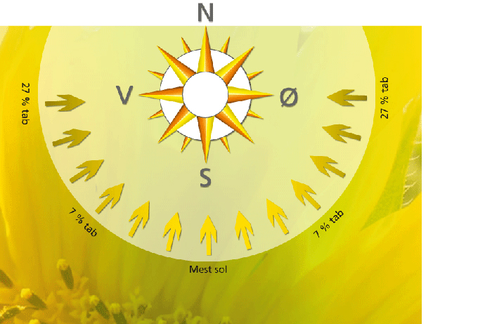 Solpanelerne placeres, så de vender mod syd i en vinkel på 30-60 grader. Det giver den bedste udnyttelse.