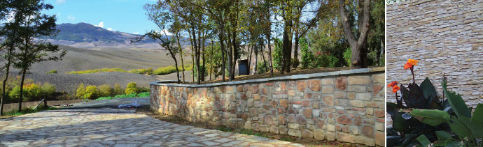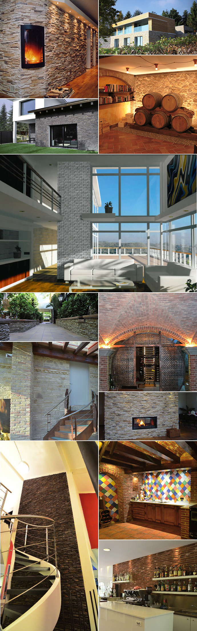 Strukturerne fås fra helt fine til meget grove og ligner fuldstændig natursten, men er meget billigere. “Ecopiedra” stenvægge består af vægpaneler i letbeton, indfarvet med oxider i alle mulige nuancer fra helt lyse til næsten sorte.