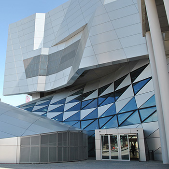 Alukassetterne, som den 10.000 m2 store facade er beklædt med, er leveret af A.E. Stålmontage. Hver kassette er tegnet og produceret i specialmål og udgør hver deres brik i det store mønster, som dækker en stor del af bygningen.