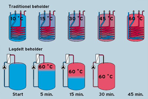 Samtidig spares der på energien, da en lagdelt beholder kun opvarmer den mængde varmt vand, der er brug for. Selv når beholderen er helt tom tager det kun ganske få minutter, før der igen er varmt vand i hanen. Hvis man vil opretholde den høje brugsvandskomfort og energibesparelse, anbefaler vi almindelig og løbende vedligeholdelse.