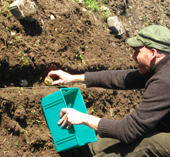 Plant de små porrer i en ca. 10 cm dyb rende og dæk med jord (hyp) i takt med væksten. Det giver længere og mere hvide skafter.