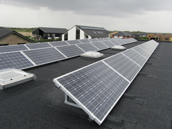 Et anlæg på 6 kW som består af 30 solelementer på 1580×800 mm, monteret i 2 rækker 15 i hver og 25 mm, mellemrum til fastgørelse giver en total længde på 12350 mm, dette kræver 8 stativer som vist på billedet.