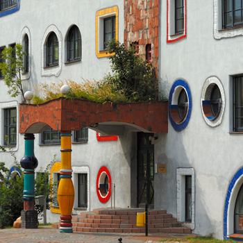 Vender man i stedet blikket mod udlandet, fortæller Tommy Bisgaard, at kunstneren og arkitekten Friedensreich Hundertwasser blev berømt for sine meget kreative bygninger, og han stod bl.a. bag opførelsen af et fantasislot, beliggende i det tidligere DDR, hvor meget af byggeriet består af lyserøde teglsten. Det lyserøde fantasislot tiltrækker en masse turister til det tidligere DDR, og meningerne i byen om slottet er delte, men der er enighed om, at Friedensreich Hundertwasser virkelig formåede at eksperimentere med teglstenenes muligheder. Hundertwasser var meget optaget af naturen, så foruden en masse beplantning ved bebyggelsen, blev der også genbrugt gamle teglsten til opførelsen, så det var i tråd med at skabe økologiske huse med respekt for naturen.