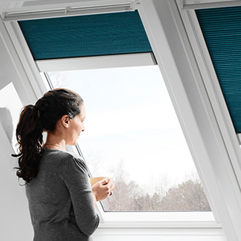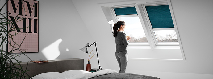 Med det nye elektriske energigardin fra VELUX Gruppen er det blevet nemmere at styre, hvor meget dagslys, man får ind i sit soveværelse. Man kan helt enkelt køre gardinet op eller ned ved et tryk på den fjernbetjente kontrolenhed.