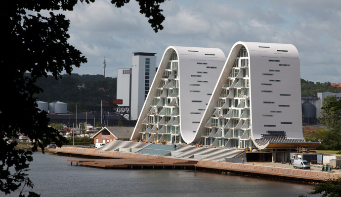 Blandt eksempler i Danmark kan nævnes Kromann og Reumert hovedsæde på Langelinie og Bjørn Nørgaard boligbebyggelse på Bispebjerg Bakke.