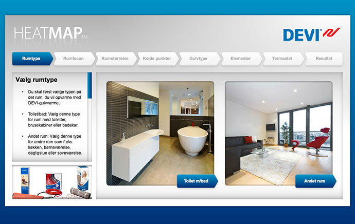 DEVI HeatMAP™ er et værktøj som kan hjælpe og inspirere dig med hvilke DEVI produkter du skal bruge i forskellige situationer.