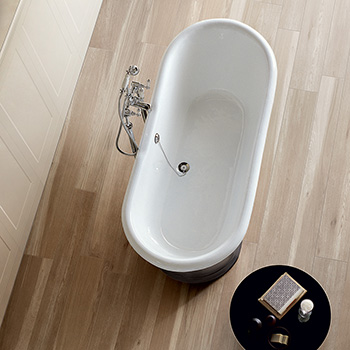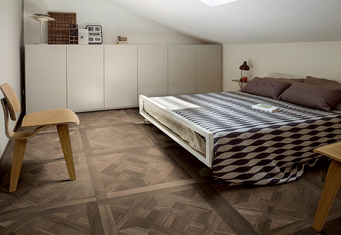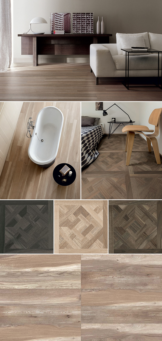 Træfliser udtrykker kompleksiteten af moderne smag ved hjælp af overraskende kombinationer og stemningsfulde atmosfærer.