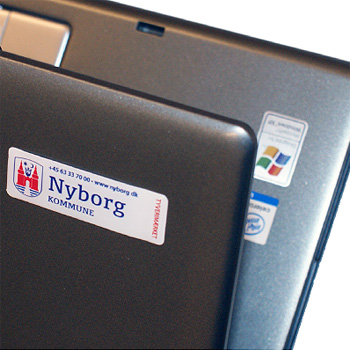 Mærkerne har en særlig lim på bagsiden, der inden for 24-48 timer “smelter” sammen med overfladen f.eks. på din PC. Mærkerne kan kun fjernes med vold og det kan tydeligt ses.