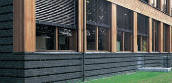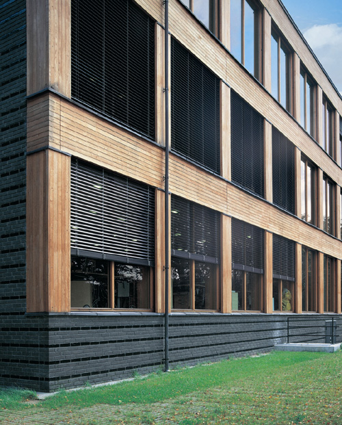 “De udvendige persienner gør det muligt at regulere lysindfaldet alt efter solens position på himlen. Hvis solen står lige på, kan persiennens lameller vippes, så de tager det direkte lys, men stadig tillader, at det naturlige lys slipper ind i bygningen, og at man kan se ud. Alternativt kan persiennen lukkes helt, hvis man vil mørklægge lokalet, f.eks. til et foredrag.”