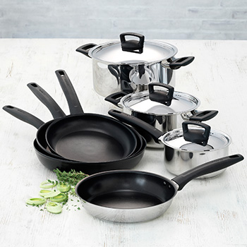 Seriens gryder og pander er udført i rustfrit stål, så hele Handy-familien kan bruges, uanset hvilken varmekilde familien har. Desuden sikrer grebene i bakelit, at det er nemt at jonglere med seriens gryder, ligesom de tåler ovnvarme op til 180º C.