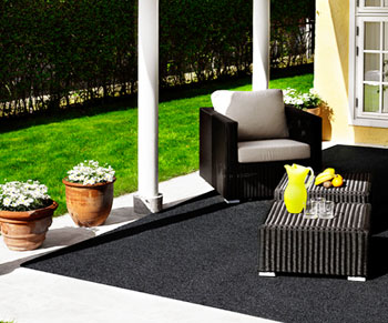 Bentzon har udviklet et unikt tæppe i et fladvævet design til udendørs brug, der eksempelvis kan lægges på terrasse, altan og i campingvognens fortelt.