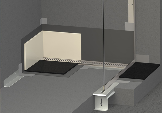Det faste modul har niveaufri overgang mellem brusearealet og det omkringliggende gulv, samt definerer fald i brusenichen.