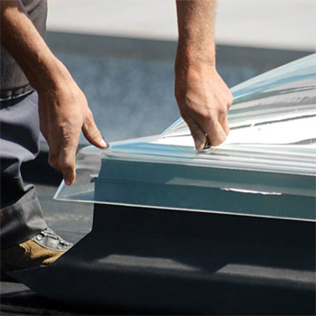 En VELUX ovenlyskuppel består af en kombination af et højisolerende ovenlysvindue med lavenergirude, hvor karm og ramme er af PVC, og en beskyttende kuppel af klar eller opalhvid akryl.