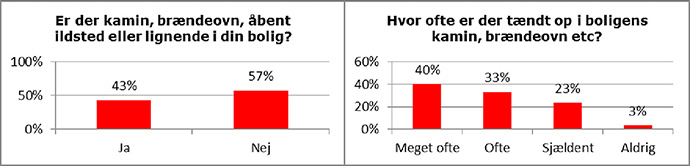 Omkring halvdelen af de adspurgte har kamin eller brændeovn, og disse er tændt ofte eller meget ofte i tre ud af fire hjem. Men selv om det kan virke generende at lukke den koldere luft ind i boligen kræver den øgede hygge, at man oftere lufter ud for at sikre frisk ilt til boligens beboere. Udlufter man de anbefalede 15 min. ad gangen, vender varmen nemlig hurtigt tilbage, når man lufter ud, da det kun er luften, der afkøles og ikke selve boligen.