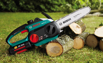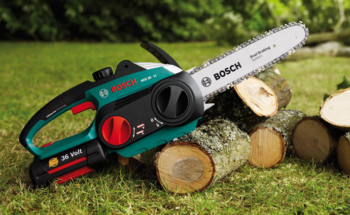 Indtil nu har en kraftig kædesav enten været benzin- eller el-drevet med ledning og en akku-kædesav har haft et batteri på 18 volt. Men sådan er det ikke mere. For i foråret 2011 lancerer Bosch verdens første akku-kædesav med et 36 volts batteri. Det stærke batteri gør AKE 30 LI langt kraftigere end hidtidige batteridrevne kædesave og giver maskinen styrke til tungt havearbejde.