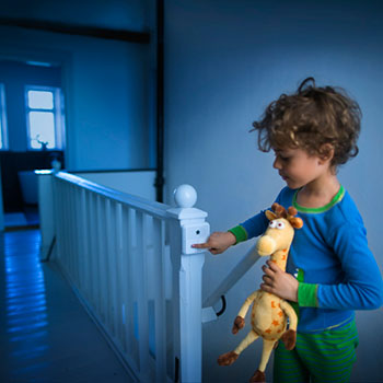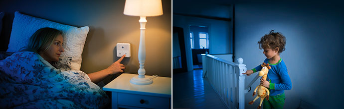 Placér panelet ved sengen eller ved toppen af trappen til 2. sal for nem adgang til Night Control.