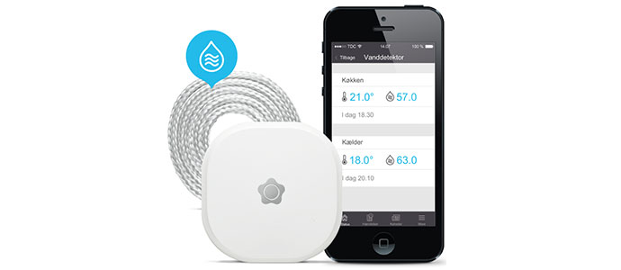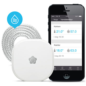 Med Verisure app kan du, via din smartphone, holde øje med din vanddetektor. Du kan også se den nuværende temperatur. Du vil modtage en meddelelse, hvis vanddetektoren eller fugtsnoren registrerer vand.