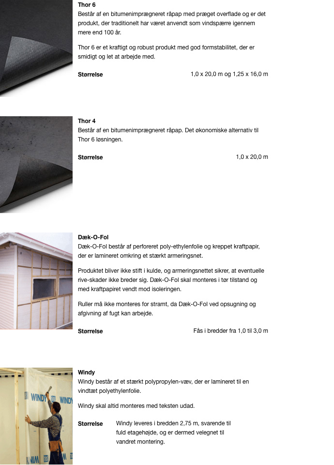 Fælles for alle tre typer produkter er, at de er diffusionsåbne, således at der ikke opstår fugtproblemer i vægkonstruktionen.